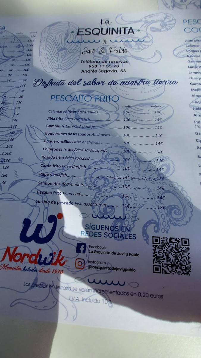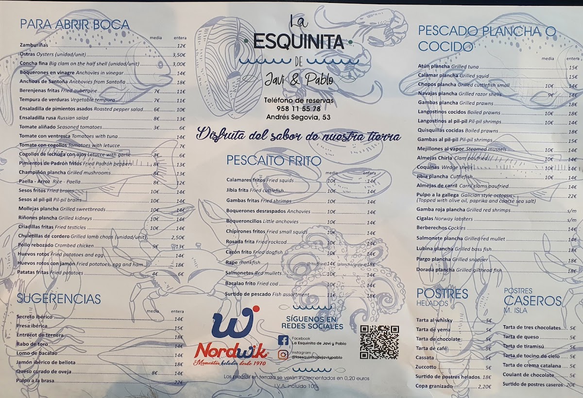 Welcome to La Esquinita de Javi y Pablo, a delightful eatery nestled in the heart of Granada at C. Andres Segovia, 53. Renowned for its fresh seafood, this restaurant is a favorite among locals and visitors alike. The warm atmosphere invites patrons to indulge in an array of delectable dishes.